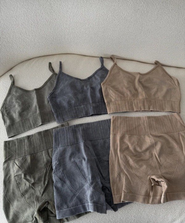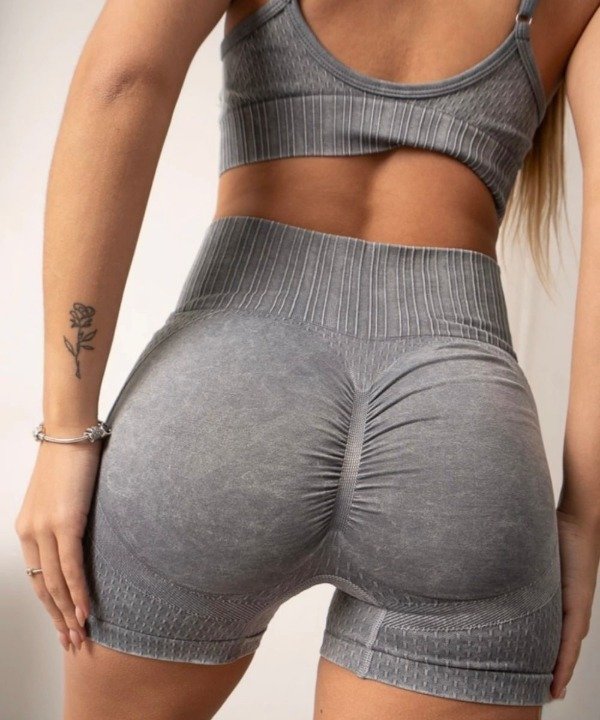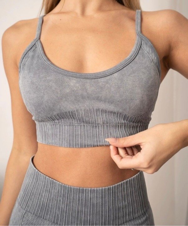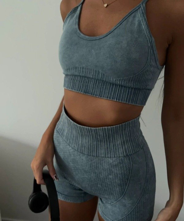 Este set deportivo seamless en tonos desgastados llegó para ser tu nuevo básico favorito. Tiene un calce cómodo, suave y súper adaptable a tus curvas gracias a su tejido acanalado que acompaña cada movimiento.