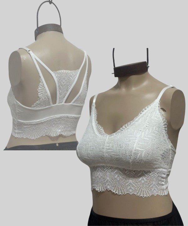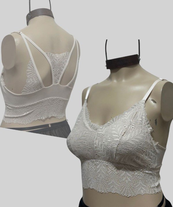 Un top que combina lo mejor de todo: puntilla en la base para un agarre cómodo y firme, espalda que combina microtul con puntilla super delicada, ideal para dejar lucir con tus remeras abiertas. Tiene un diseño que estiliza sin apretar.