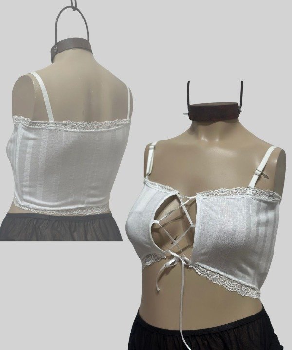 Este corset de morley de algodón combinado con puntilla angosta en sus terminaciones es una edición mega limitada, creado artesanalmente en REVERIE, lo que te garantiza una prenda única. Sus breteles regulables aseguran un ajuste perfecto, tiene ballenas para un perfecto ajuste y agarre. El detalle de la delantera que tiene un lazo de raso para que lo anudes a tu gusto. TIP: Ideal para complementar tu outfit y darle un toque atrevido y único a tu look.