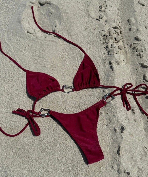 Es la bikini en tendencia de este verano. Forrada en ambas prendas. Es un modelo de corpiño triangulo básico! Con detalle de hebilla en el centro del busto que le da un toque divino ❤. Ideal para cuando estas bien bronceada. Tiene breteles para atar en el cuello y la espalda también. La bombacha también se ata y viene a cada lado una hebilla como el corpiño.